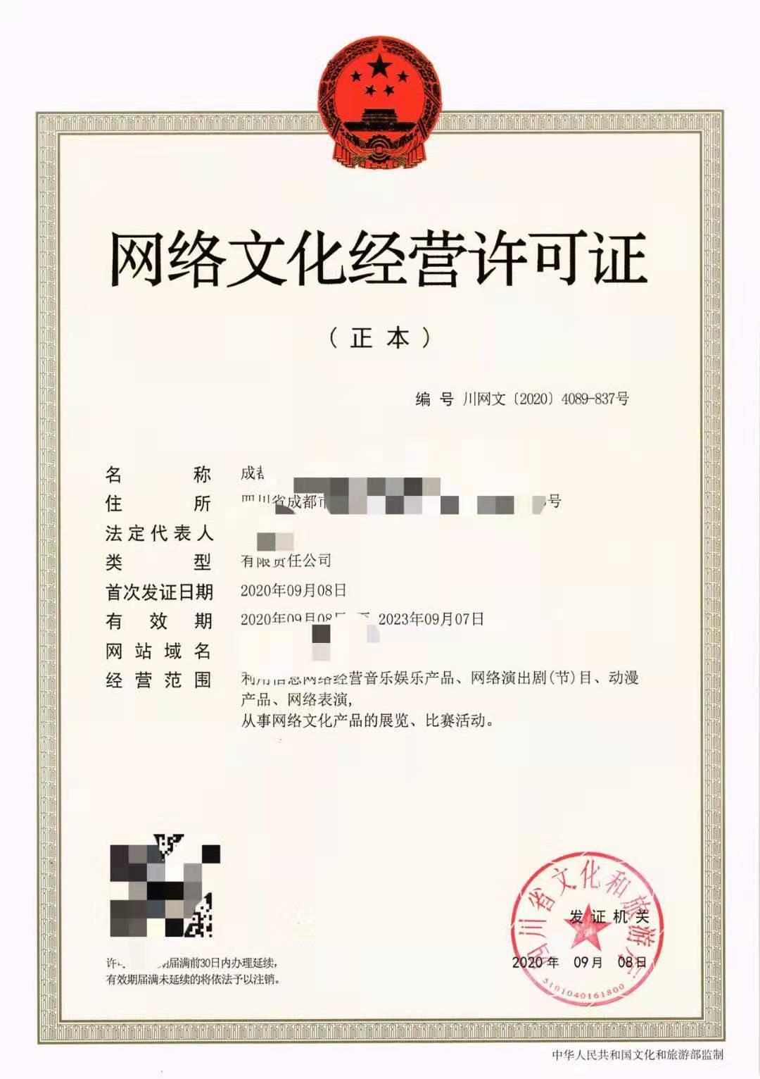 网络文化经营许可证